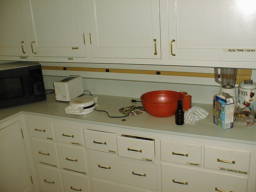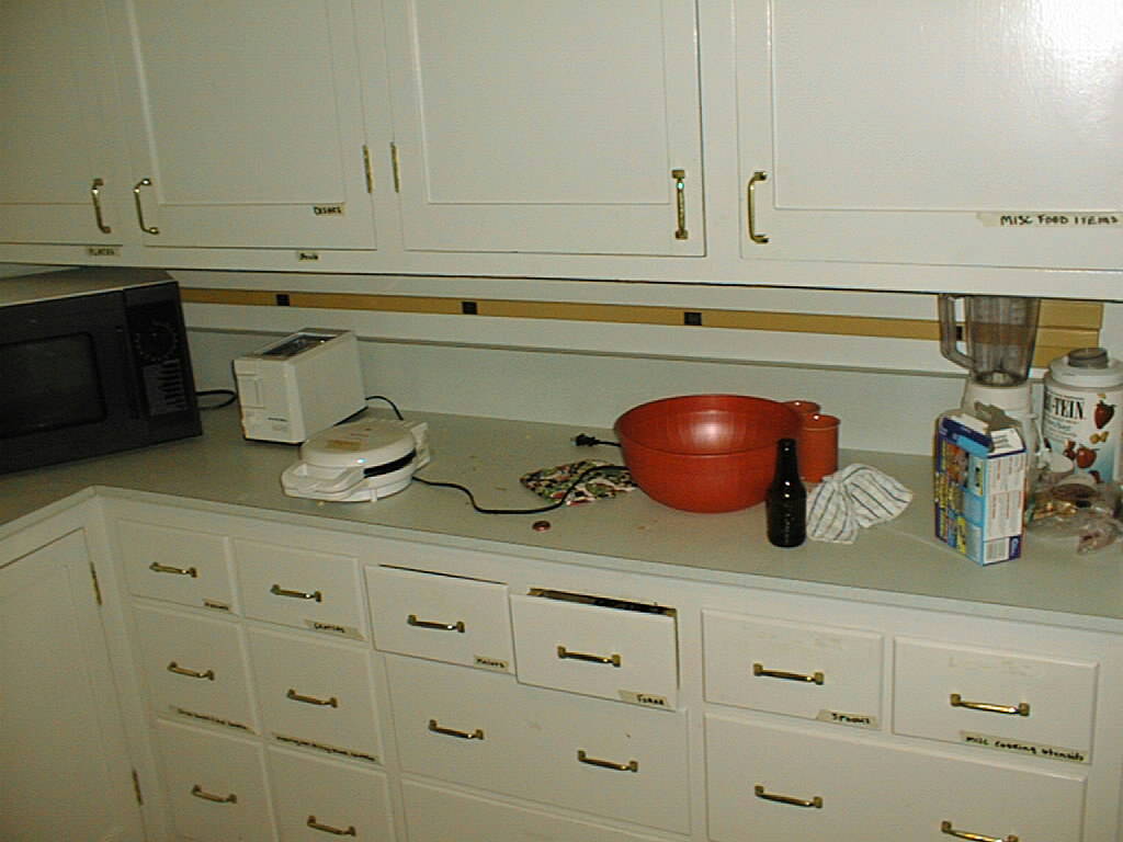 This is our kitchen. Uh, oh. Looks like someone forgot to clean up...again. |